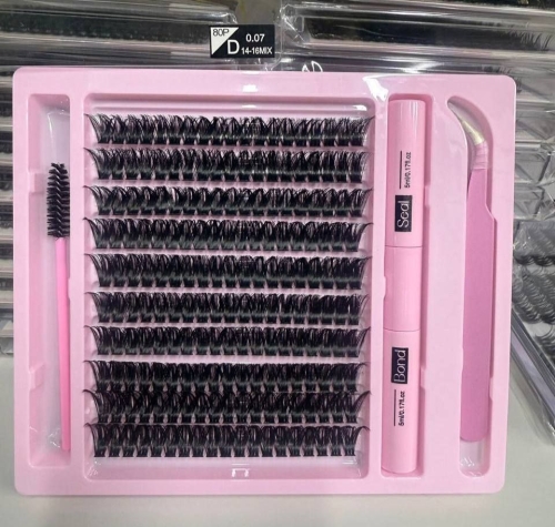 Набор пучковых ресниц (пинцет и клей/закрепитель, щетка) 80p D 0.07 14-16mm