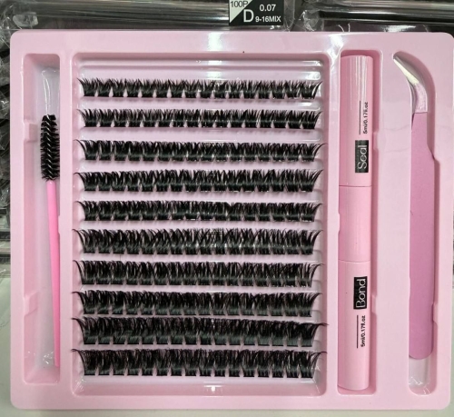 Набор пучковых ресниц (пинцет и клей/закрепитель, щетка) 100p D 0.07 9-16mm